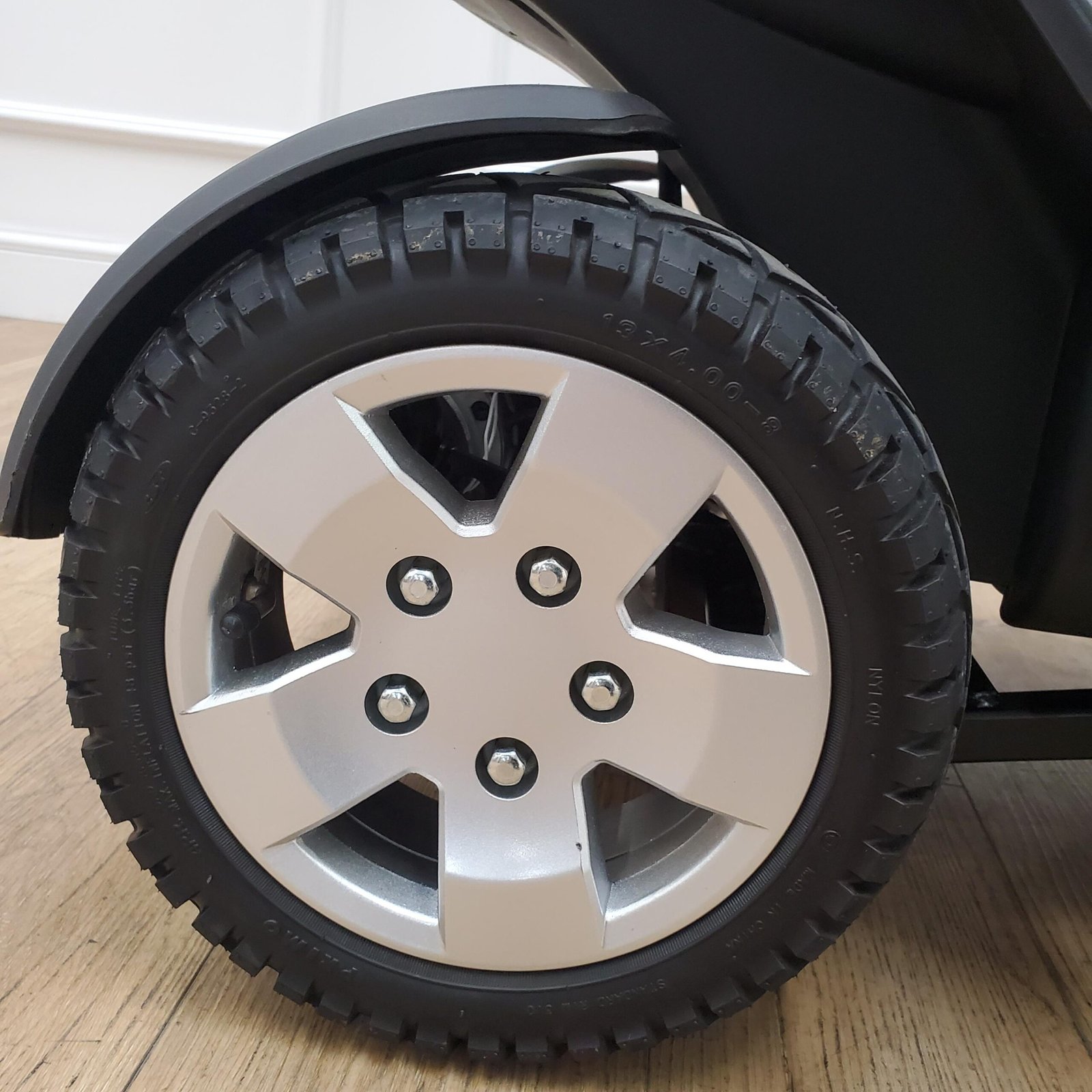 - Huge 13 inch terrain-gripping outdoor pneumatic tyres